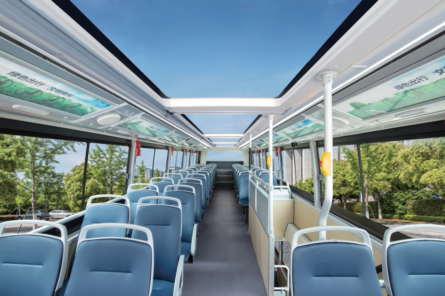 XMQ6108SGBEVL 純電動(dòng)雙層公交車基于整車底盤結(jié)構(gòu)的優(yōu)化設(shè)計(jì),有效擴(kuò)容車內(nèi)承載空間,10.5米車身即可達(dá)成 62+1的座椅布局,乘客核載人數(shù)比肩 12米同類車型。猶如坐居高層的移 動(dòng)觀景席,二層貫穿式全景天窗(選裝),360度盡覽城市美景。