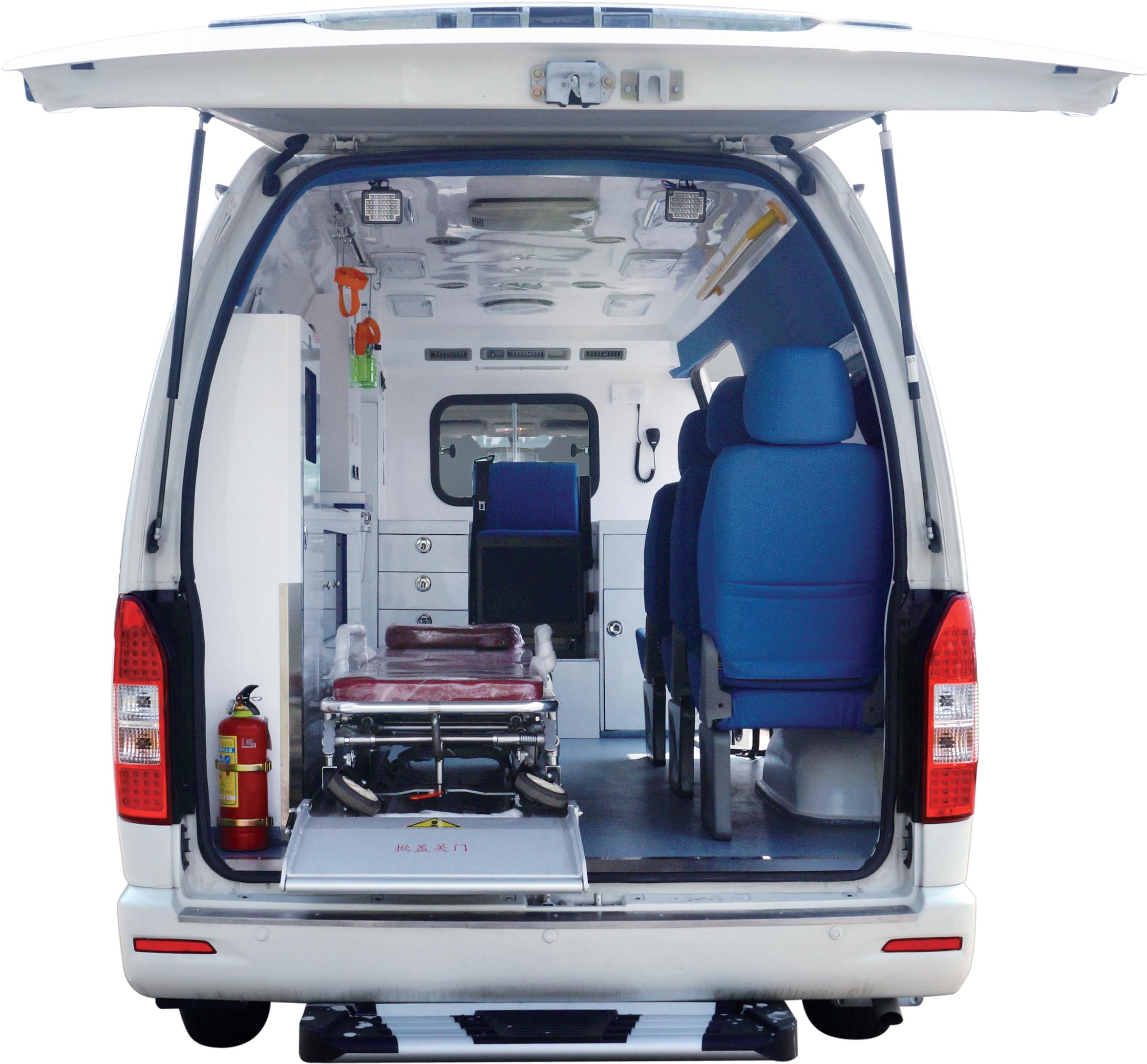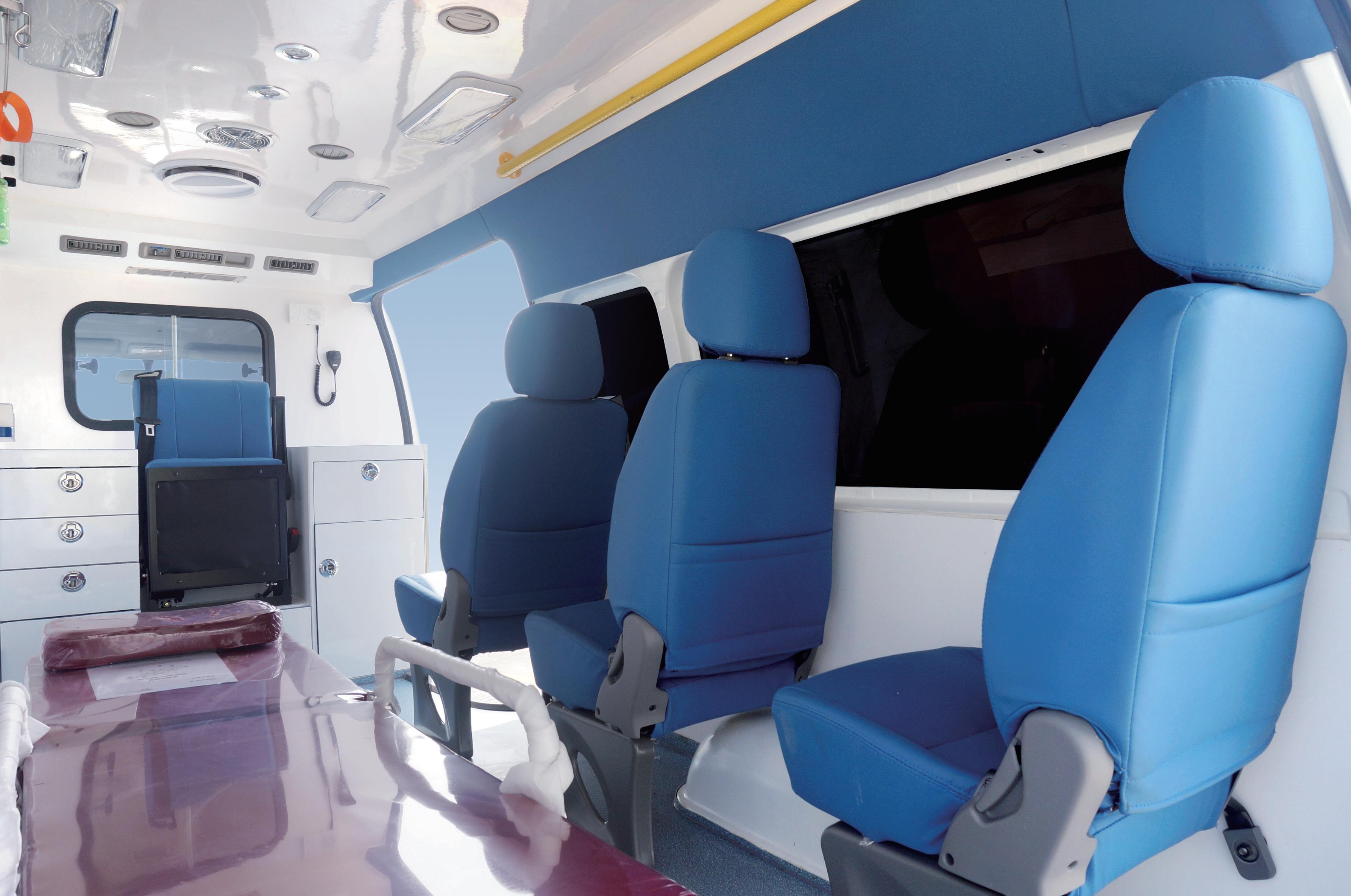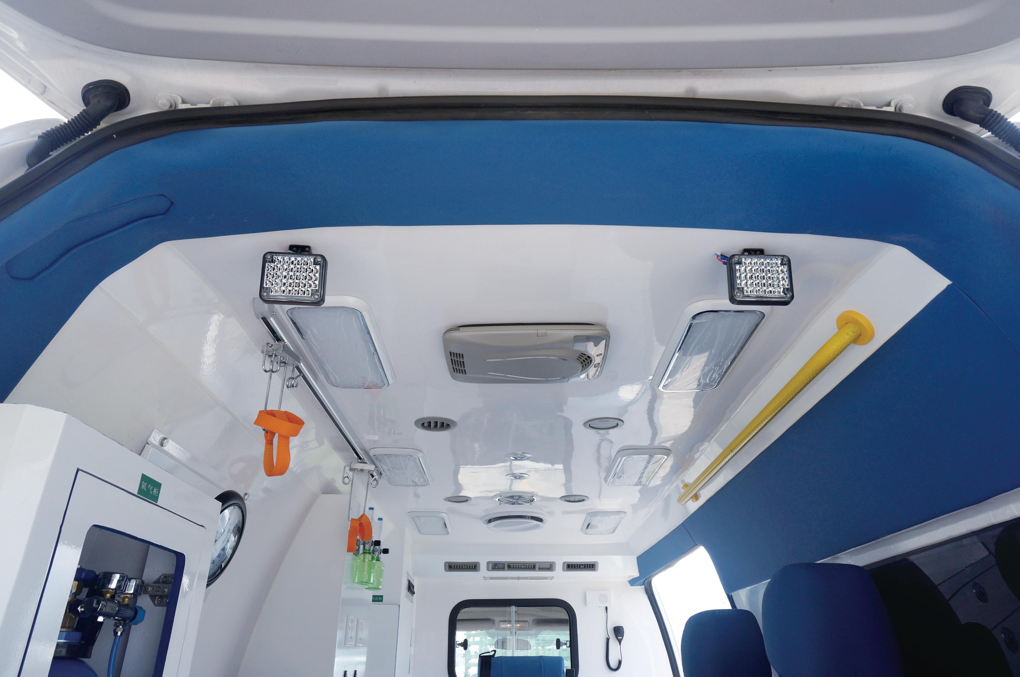 • 醫(yī)療艙頂部裝配可移動醫(yī)療掛鉤、安全拉手、紫外線消毒燈、醫(yī)療艙照明燈、夜間擔(dān)架上車照明燈