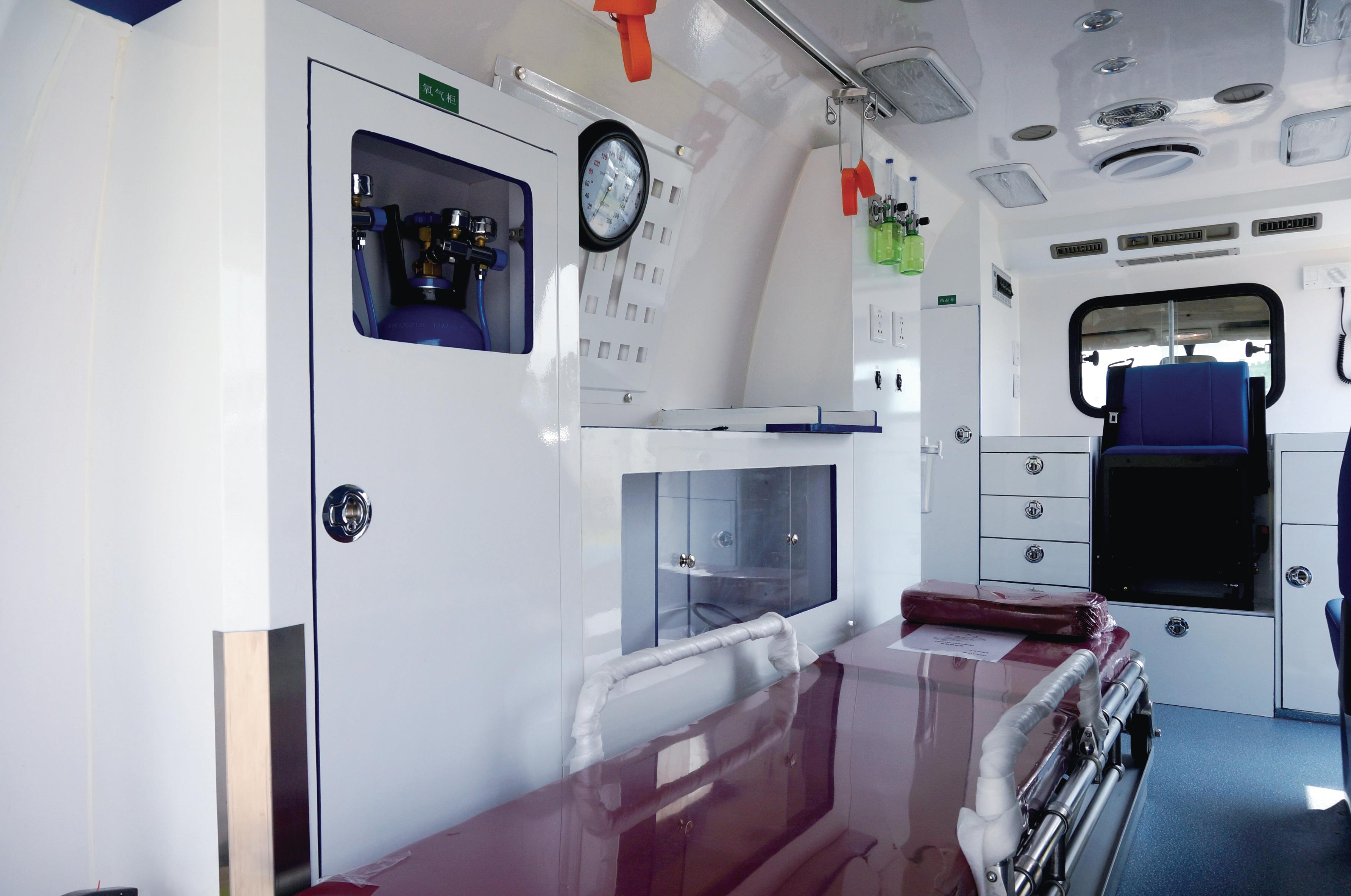 內(nèi)飾部分內(nèi)飾板醫(yī)療艙側(cè)圍、車頂、 中隔板內(nèi)部區(qū)均采用玻璃鋼環(huán)保