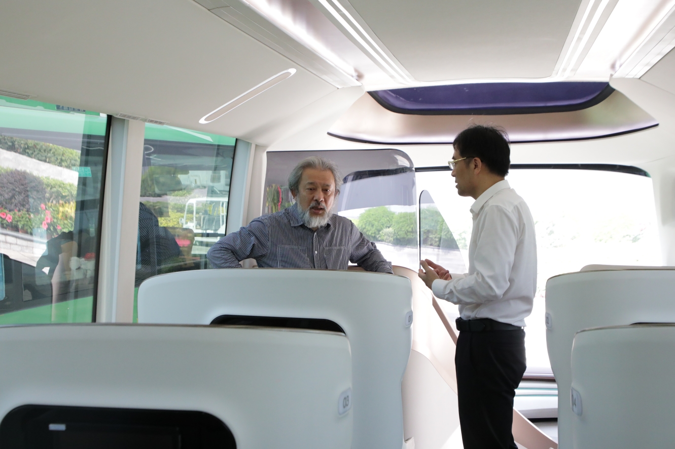 在實地參觀金龍最新的科技成果——MerryCombo純電動數(shù)智大巴后,蘇亮向王健教授詳細介紹了金龍近幾年在新能源、智能網(wǎng)聯(lián)等領域創(chuàng)新成果的商業(yè)化應用及落地情況和未來戰(zhàn)略規(guī)劃。